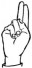 На ћирилици написано БУДИМИР ВЕЉОГЛАВАЦ састоји се из 17 слова [?]. Исписано ћириличном једноручном азбуком за глувонеме: